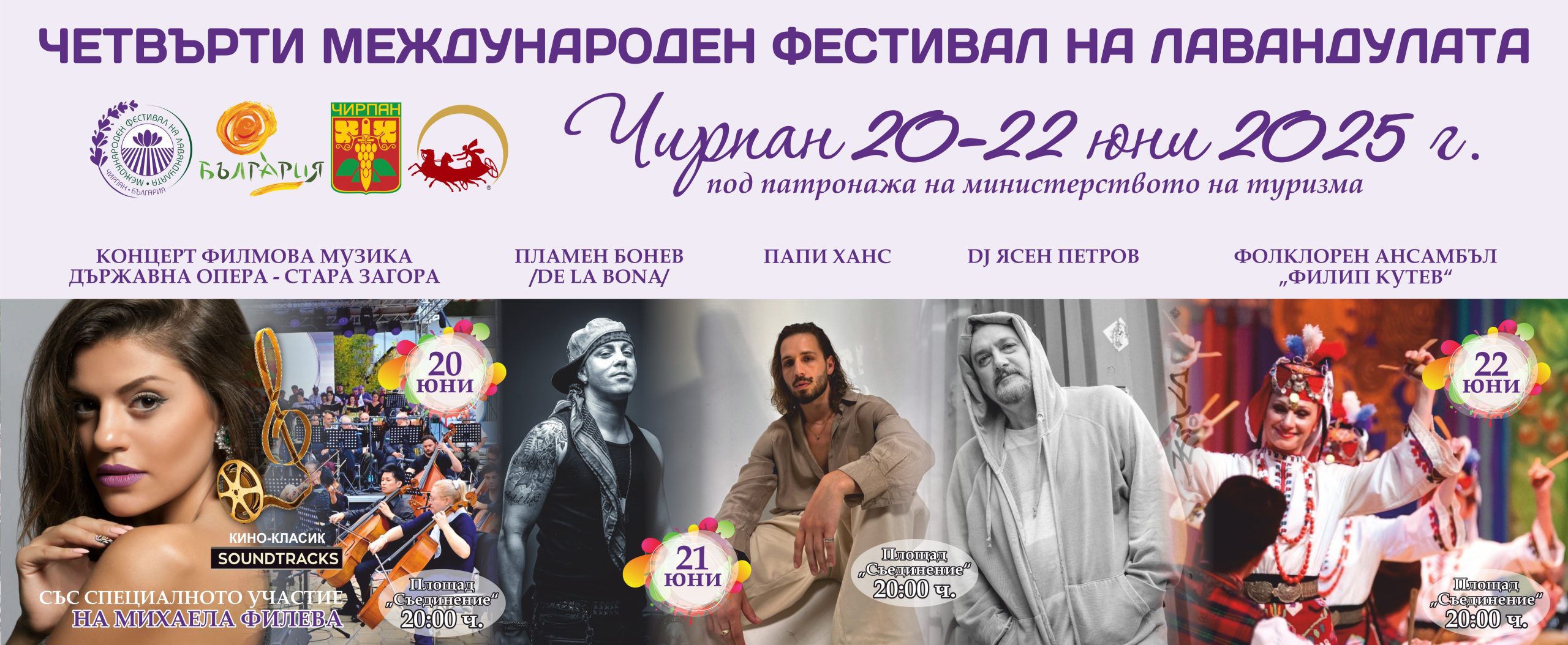 Със зрелищният Концерт филмова музика „Кино-класик Soundtrack” Държавна опера Стара Загора участва в програмата на първия ден на Международния фестивал на лавандулата в Чирпан. На 20 юни в 20 часа на площада в града след официалното откриване на фестивала започва концертът, който е със специалното участие на звездата на българската поп-музика Михаела Филева.