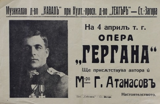 Рождената дата на Старозагорската опера е 1 юли 1925 година – датата на премиерата на операта „Гергана“ на Маестро Георги Атанасов. Диригент е Атанас Ковачев, режисьор – Мара Шопова, хормайстор – Златан Станчев. В главните роли: Гергана – Ничка Хаджимитева (Баталова), Никола – Георги Баталов, Христина – Радка Профирова, Дядо Недялко – Петър Тотев, Селим бей -Теню Велев, Мухтар ага – Стефан Георгиев, Баба Цона – Христина Георгиева. Събитието поставя и началото на първата постоянно действаща извънстолична опера в страната.